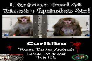 Defensores dos direitos dos animais de Curitiba  estão se mobilizando para participar, no próximo sábado (28), da 2ª Manifestação Nacional contra Experimentação Animal. Em todo País, mais de 50 cidades já confirmaram a realização de tatos públicos neste dia.